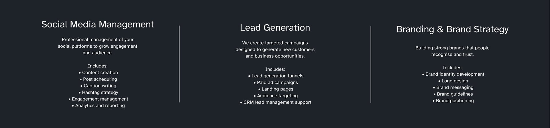 Rocketlead is a marketing and brand development agency dedicated to helping individuals and businesses grow their digital presence and reach their full potential. In today's fast-moving digital world, having a strong brand and consistent online presence is essential. Rocketlead works with clients to build strategic marketing solutions that increase visibility, attract customers, and strengthen brand identity. Our expertise spans across social media management, digital marketing, branding, lead generation, website design, UX design, and graphic design. We believe every brand has a story to tell, and our mission is to help clients share that story in a way that connects with the right audience and drives real growth.